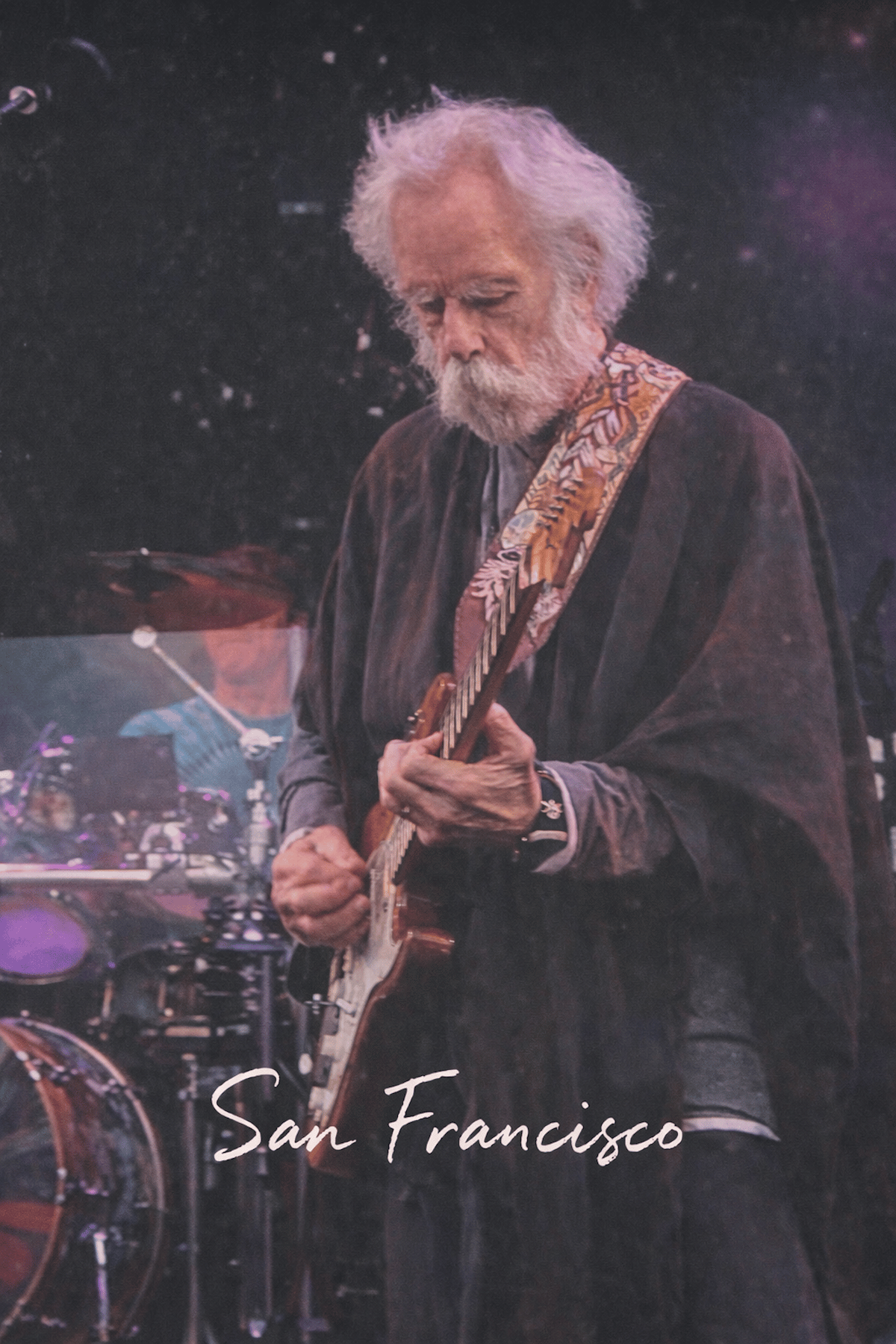 A postcard we made from a photo that captured Bobby at the 60th Anniversary shows in San Francisco. Download it, keep it somewhere visible, or pass it along. Let it be a small reminder to stay in the song.